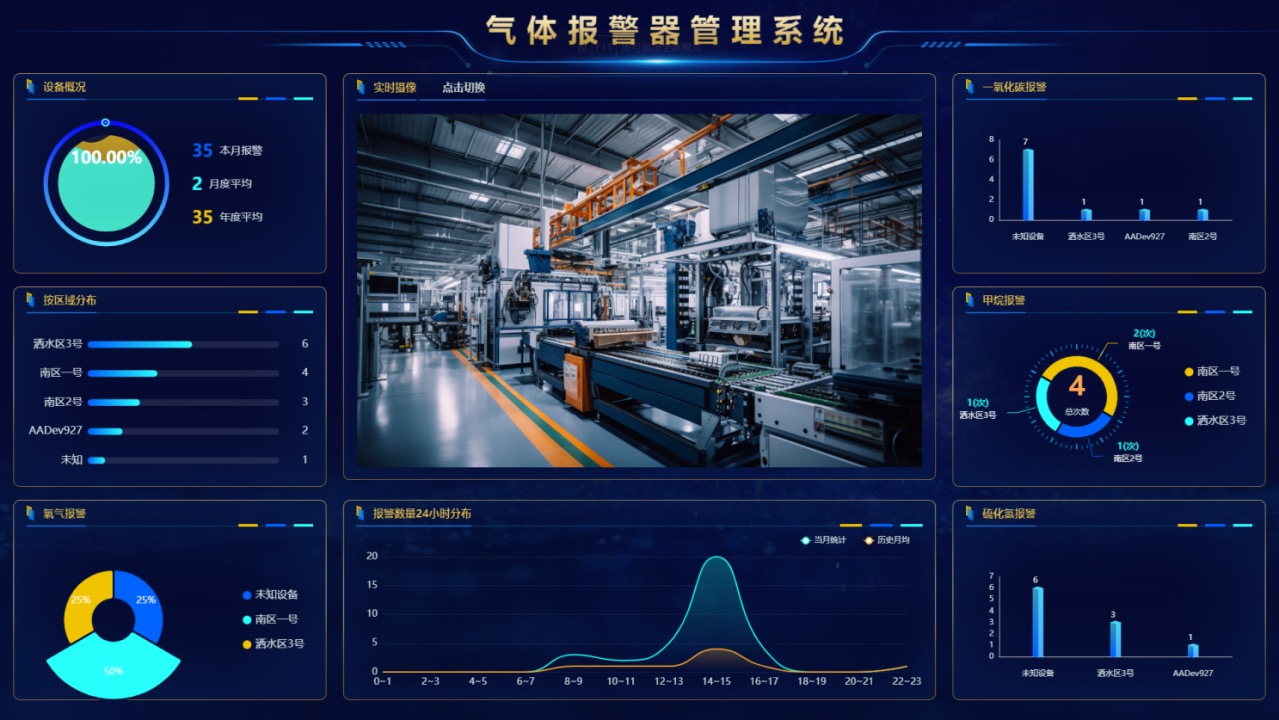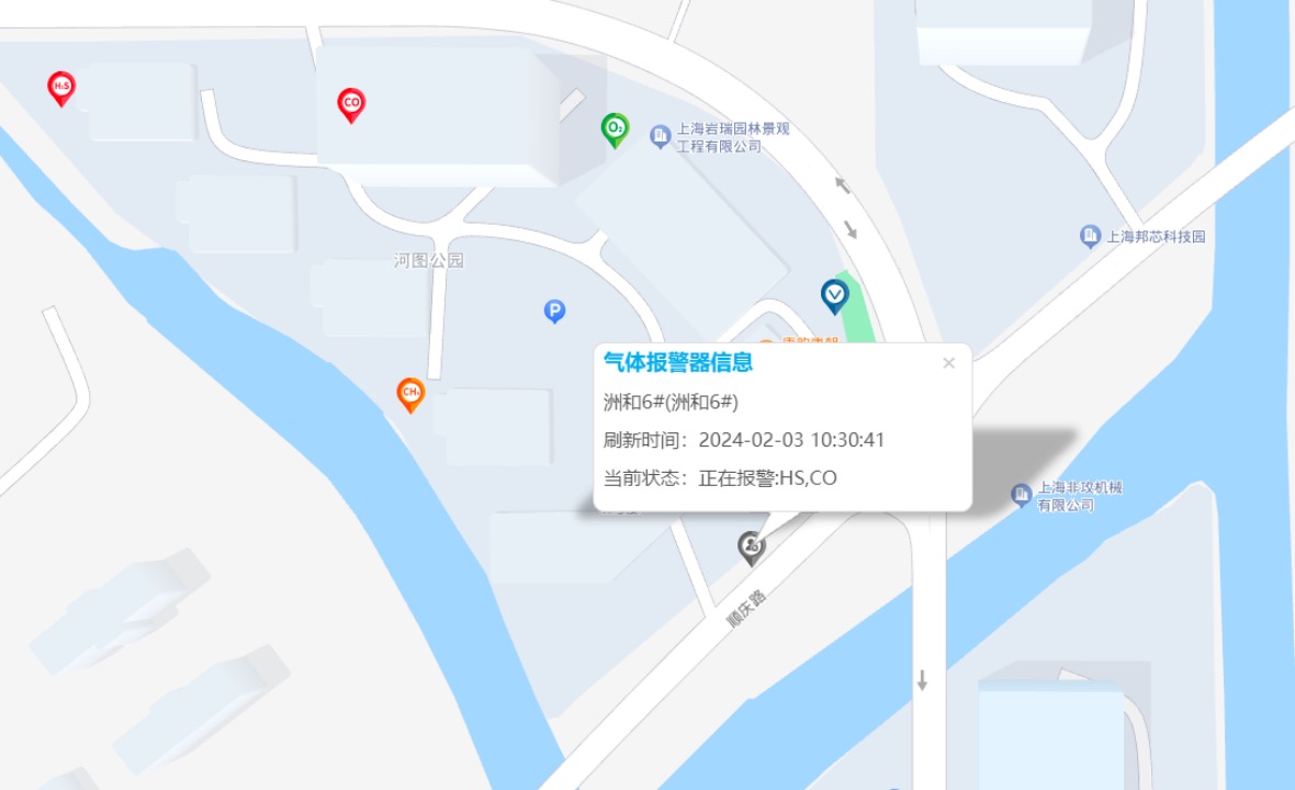 3. 气体报警设备启动,自动在大屏呈现设备信息,自动监控报警,方便快捷