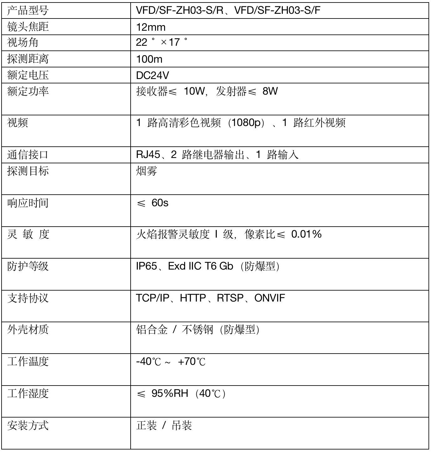 探测器可以探测早期火焰,平均响应时间小于 5s,像素比≤ 0.01%