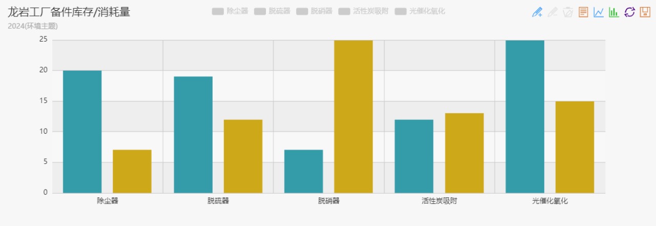分设备类型(主题)统计一段时间内,各个类型的设备(备品备件)的库存和消耗情况。库存不足时人工智能自动提醒,有效节约备品备件积压成本,降低备件不足的风险。