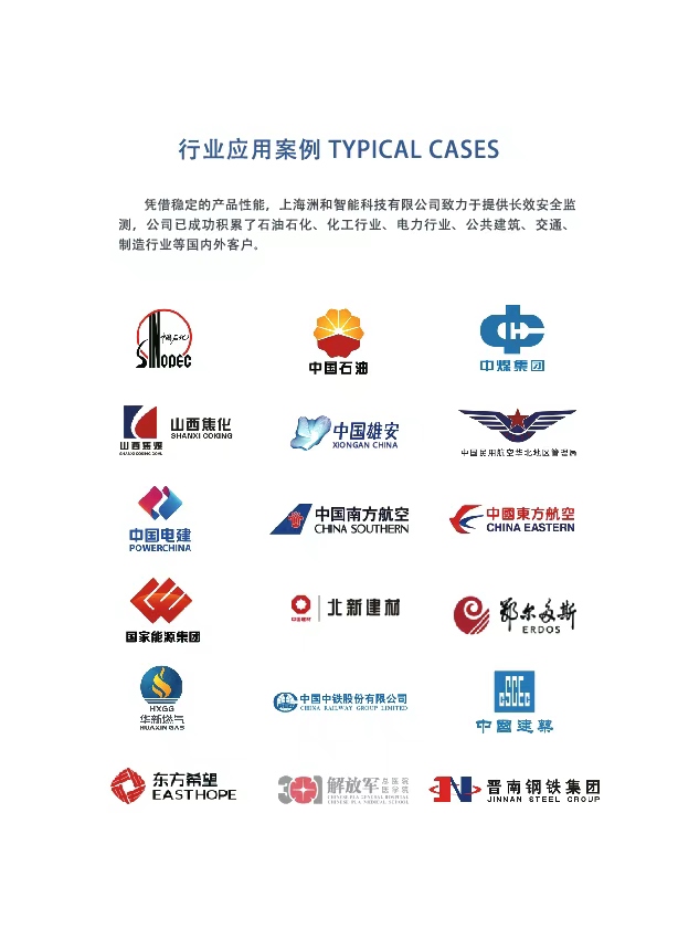 凭借稳定的产品性能,上海洲和智能科技有限公司致力于提供长效安全监测,公司已成功积累了石油石化、化工行业、电力行业、公共建筑、交通、制造行业等国内外客户。